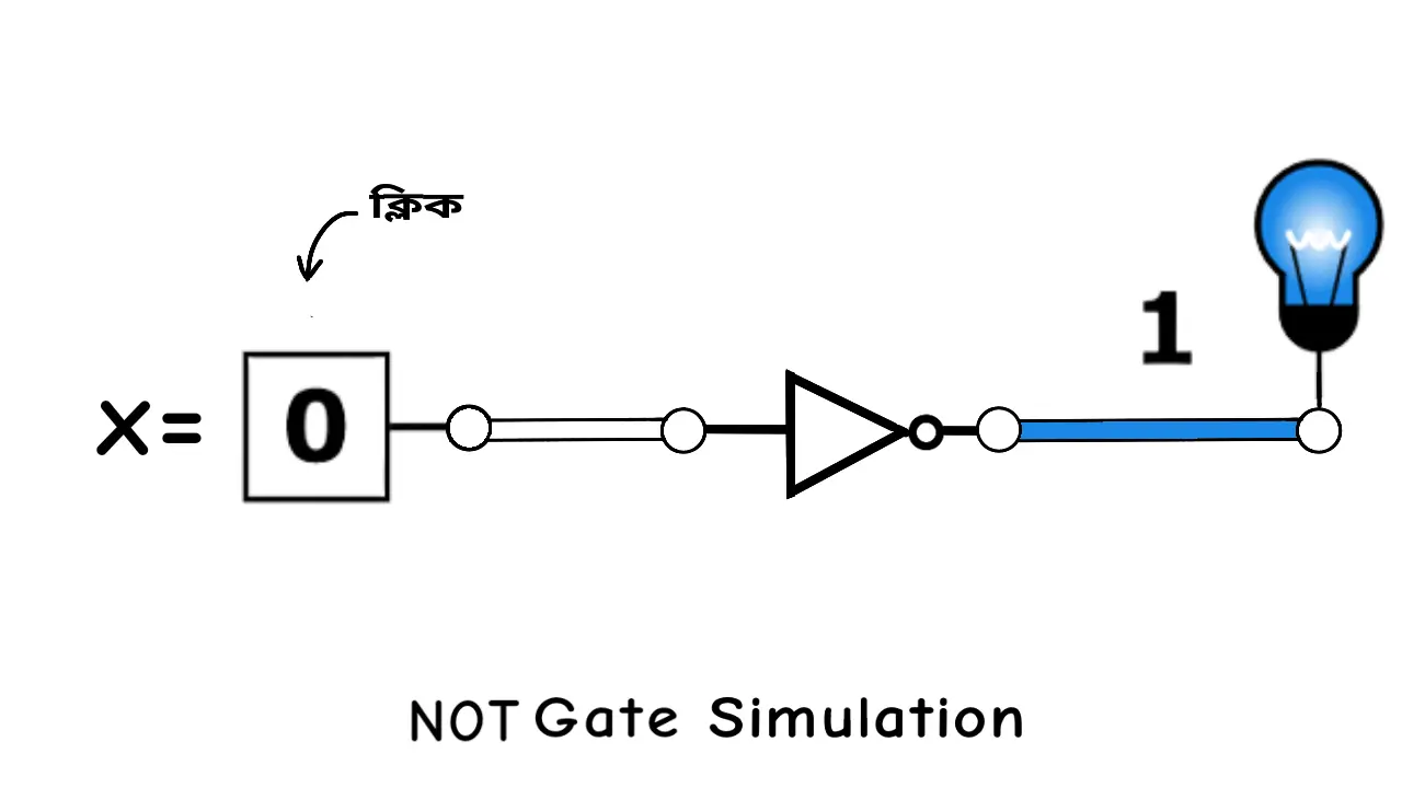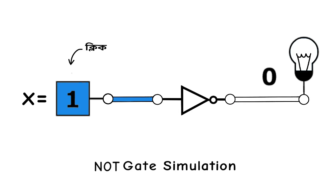 NOT Gate-এ একটি মাত্র ইনপুট এবং একটি মাত্র আউটপুট থাকে। NOT Gate ইনপুটের বিপরীত মান আউটপুট হিসেবে প্রদান করে। অর্থাৎ ইনপুট ১ দিলে আউটপুট হিসেবে ০ পাওয়া যায়, অপরদিকে ইনপুট ০ দিলে আউটপুট ১ পাওয়া যায়।