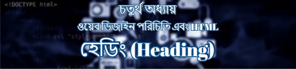 খবরের কাগজের Heading বা শিরোনামের মত ওয়েব পেজেও বিভিন্ন সাইজের হেডিং ব্যবহারের প্রয়োজন পড়ে। হেডিং -এর ফন্ট সাইজ অপেক্ষাকৃত বড় ও বোল্ড হয়ে থাকে। হেডিং ট্যাগ হিসেবে <h1> থেকে <h6> মোট ৬টি ট্যাগ আছে।