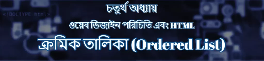 ক্রম যুক্ত (Ordered) কোন লিস্ট তৈরি করতে <ol> ট্যাগ ব্যবহার করা হয়। <ol> ট্যাগের ‘o’ এবং ‘l’ বর্ণদুটি যথাক্রমে ‘Ordered’ এবং ‘List’ শব্দদুটিকে নির্দেশ করে।